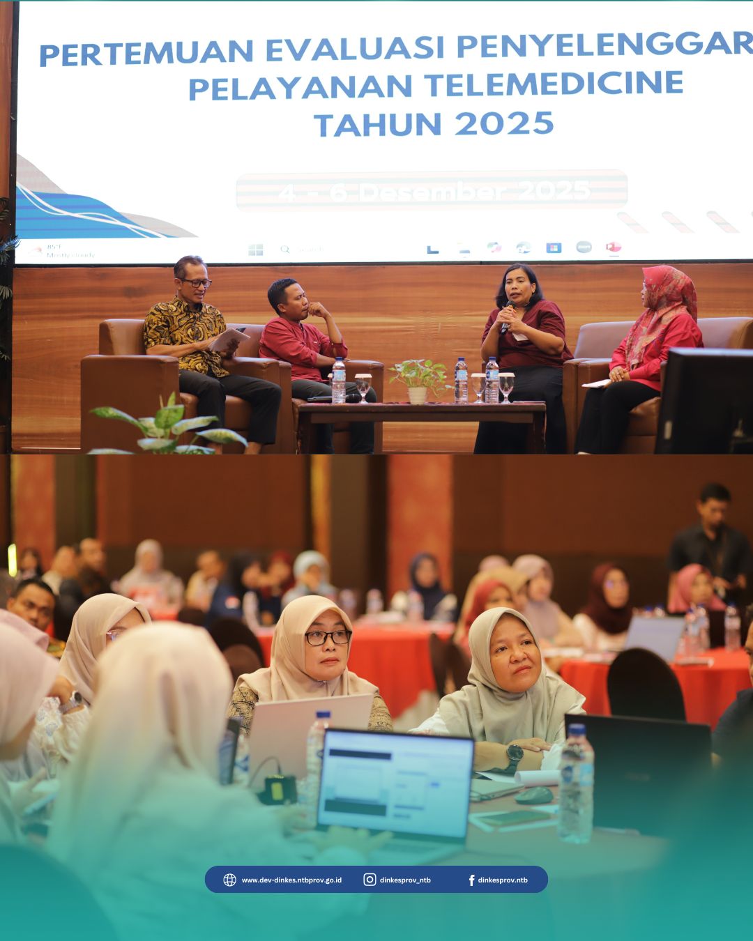 Dinas Kesehatan Provinsi Nusa Tenggara Barat menyelenggarakan Pertemuan Evaluasi Penyelenggaraan Pelayanan Telemedicine di Mataram pada 4-6 Desember 2025. Kegiatan ini menghadirkan perwakilan BPJS wilayah IX, Bapedda NTB, Dinas Kesehatan kabupaten/kota, rumah sakit, serta puskesmas di NTB.