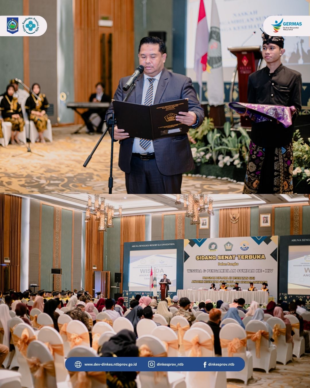 Mewakili Gubernur Nusa Tenggara Barat, Kepala Dinas Kesehatan Provinsi NTB, Dr.dr.H.Lalu Hamzi Fikri pada acara Wisuda dan Pengambilan Sumpah ke XIV Program Diploma III Kesehatan Gigi Akademi Kesehatan Gigi Karya Adi Husada Mataram di Hotel Aruna, Lombok Barat pada Senin (20/10)