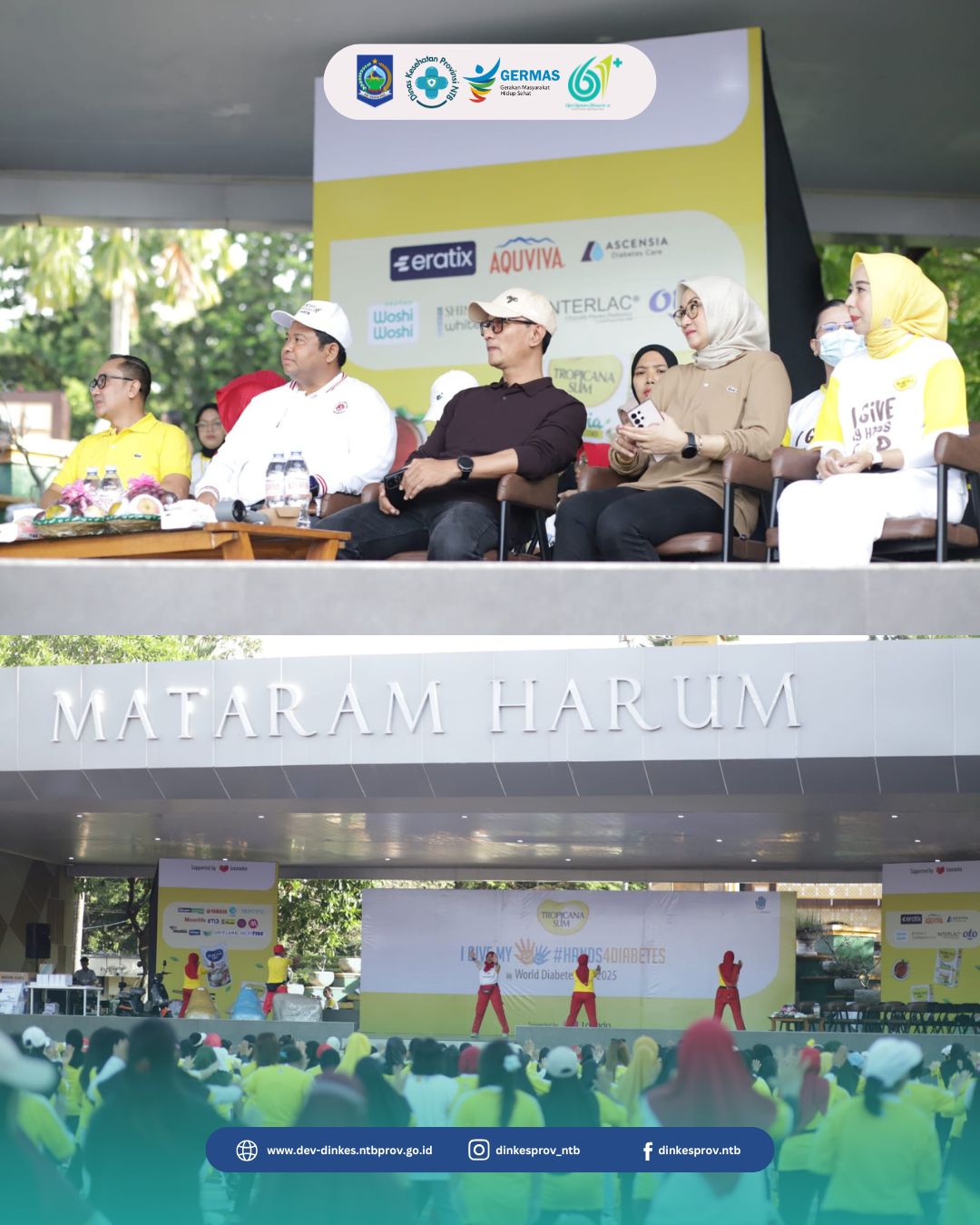 Hari Diabetes Sedunia diisi dengan kegiatan senam bersama, edukasi kesehatan dan pemeriksaan kesehatan gratis ang dihadiri langsung oleh Kepala Dinas Kesehatan Provinsi NTB sekaligus Ketua Yayasan Jantung Indonesia Cabang Provinsi NTB, Dr. dr. H. Lalu Hamzi Fikri, MM.,MARS., di Lapangan Sangkareang, Mataram, Minggu (16/11).