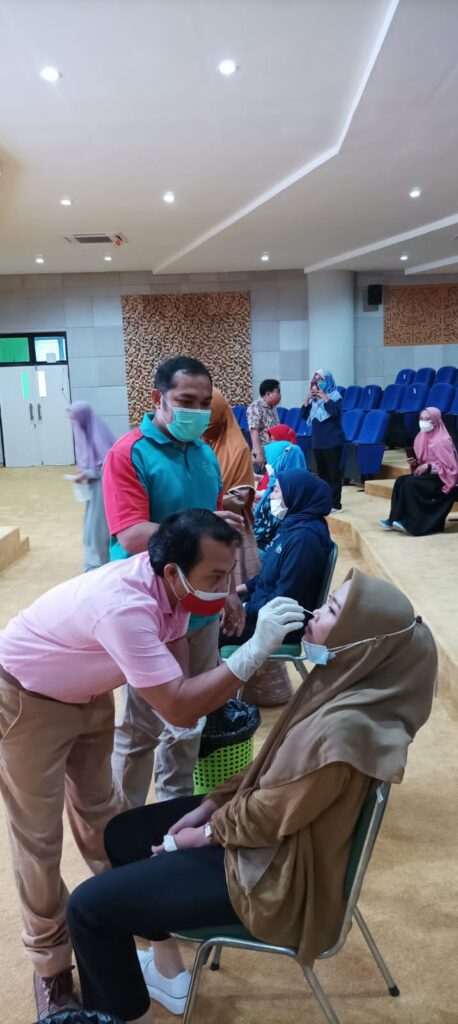 Pelatihan Tenaga Swabber Angkatan I untuk Kabupaten Lombok Barat dilaksanakan selama 2 hari mulai tanggal 22 – 23 September 2021 di Auditorium dr. Yunita Sabrina Fakultas Kedokteran Universitas Mataram dan dibuka secara resmi Kepala Bidang Sumber Daya Kesehatan Wilya Isnaini., SKM., MM.