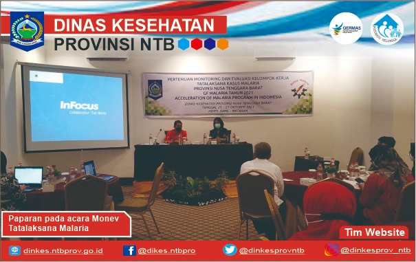 Untuk itu Seksi P2MZ Bidang P2P Dinas Kesehatan Provinsi NTB bekerjasama dengan GF Malaria menyelenggarakan kegiatan Pertemuan Monitoring dan Evaluasi Kelompok Kerja Tatalaksana Kasus Malaria Provinsi NTB selama 3 hari mulai tanggal 25 – 27 Oktober 2021 di Hotel Same Mataram.