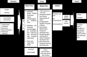Proses pelatihan akan berpusat pada peningkatan wawasan dan kompetensi terhadap pengetahuan, sikap, dan keterampilan baik individual maupun tim dalam memberikan pembinaan, pelayanan dan perlindungan kesehatan terhadap jemaah kelompok terbangnya serta tugas-tugas administrasi lainnya.