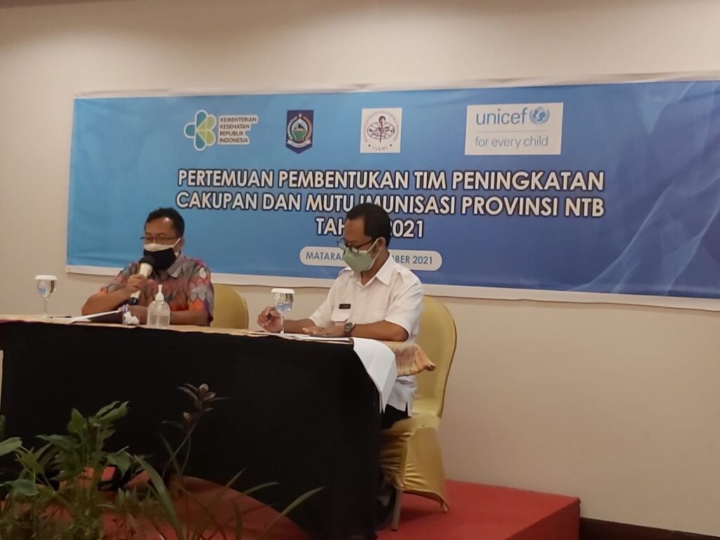 Oleh karena itu untuk mensukseskan program tersebut maka Dinas Kesehatan Provinsi NTB NTB bekerjasama dengan Ikatan Ahli Kesehatan Masyarakat Provinsi NTB dan UNICEF menyelenggarakan pertemuan pembentukan tim peningkatan cakupan dan mutu imunisasi di Provinsi NTB yang dilaksanakan pada hari Rabu (15/09/20210 di Hotel Aston In Mataram dan diikuti oleh 20 orang peserta yang terdiri dari pengelola program imunisasi dan lintas program terkait di Dinas Kesehatan Provinsi NTB, dengan narasumber dari Dinas Kesehatan Provinsi NTB, UNICEF Indonesia dan IAKMI.