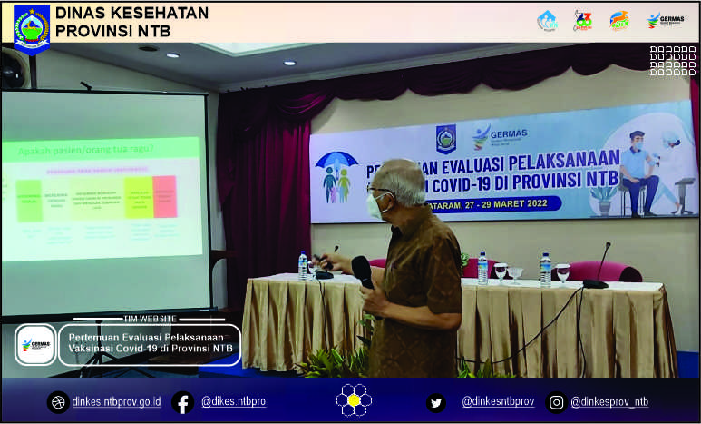 Untuk itu Dinas Kesehatan Provinsi menyelenggarakan Pertemuan Evaluasi Pelaksanaan Vaksinasi Covid-19 Provinsi Nusa Tenggara Barat selama tiga hari mulai tanggal 27 s/d 29 Maret 2022 di Hotel Grand Legi Mataram.