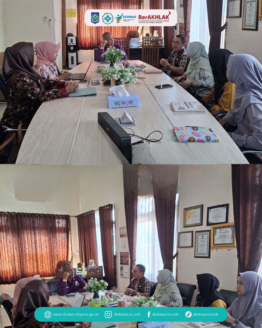 Dalam kunjungan tersebut, Kepala Bidang PPKB bersama Timker KB-Kespro melakukan silaturahmi dan koordinasi dengan dua Organisasi Perangkat Daerah (OPD), yaitu Dinas Kesehatan Kabupaten Lombok Utara dan Dinas DP3KB Kabupaten Lombok Utara. Rombongan disambut hangat oleh Kepala Dinas Kesehatan Kabupaten Lombok Utara dan Kepala Dinas DP3KB Kabupaten Lombok Utara beserta jajaran.