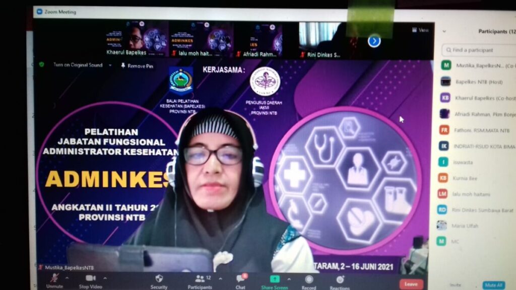 Guna meningkatkan dan meningkatkan Sumber Daya Manusia (SDM) Kesehatan sebagai salah satu indikator keberhasilan pembangunan maka untuk kedua kalinya IAKMI Provinsi NTB bekerja sama dengan Bapelkes Provinsi NTB, menyelenggarakan Pelatihan Jabatan Fungsional Administrator Kesehatan dan dilaksanakan secara virtual online/daring melalui zoom meeting mulai tanggal 2 – 16 Juni 2021.