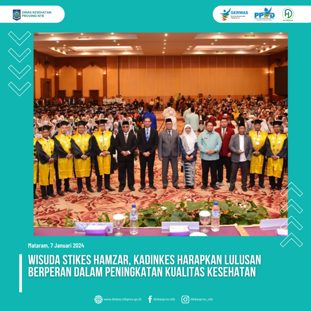 Hal ini disampaikan oleh Kepala Dinas Kesehatan, Dr. dr. H. Lalu Hamzi Fikri, MM., MARS mewakili Pj Gubernur NTB saat memberi sambutan dalam acara Wisuda Bersama STIKES Hamzar, STEI Hamzar dan STKIP Hamzar di Hotel Lombok Raya Mataram, Minggu (7/1/2023) kemarin.