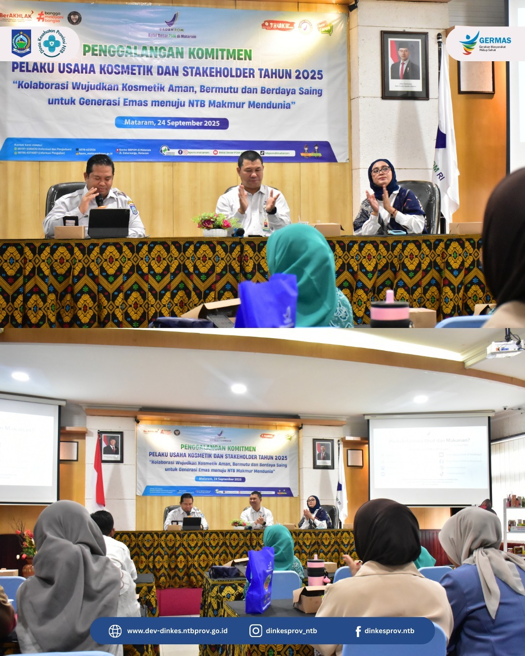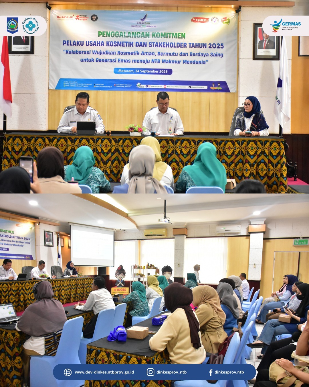 Kepala Dinas Kesehatan Provinsi Nusa Tenggara Barat hadir membuka acara pada kegiatan Penggalangan Komitmen Pelaku Usaha Kosmetik dan Stakeholder Tahun 2025 dengan tema ‘Kolaborasi Wujudkan Kosmetik Aman, Bermutu, dan Berdaya Saing untuk Generasi Emas Menuju NTB Makmur Mendunia’.